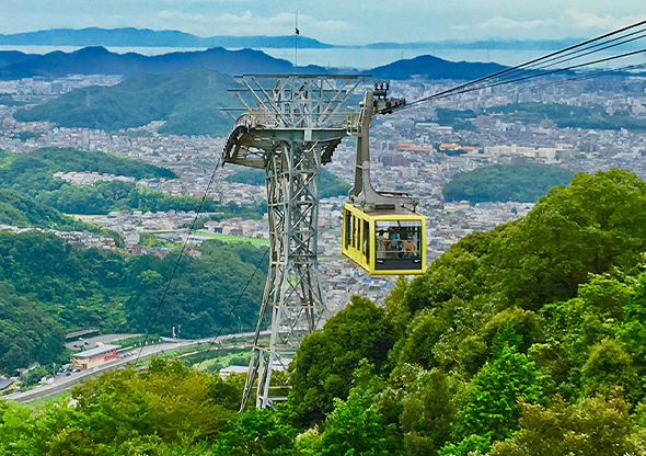 約4分の空宙山歩。標高371メートルの山頂は迫力満点